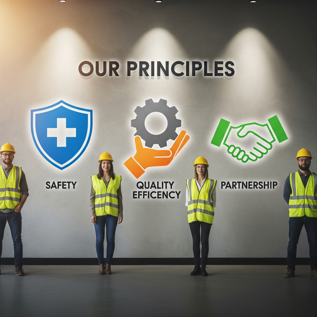 We base our work on the principle of ethics and respect for the entity of employees before subordinates. We take care of their health and complete safety, we provide them with job and human security precautions, and we respect and appreciate every effort that aims at raising the moral and human level of the company